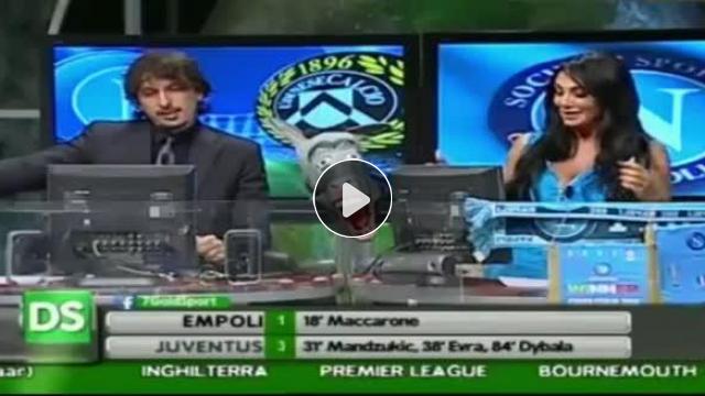 Napoli taraftarı ünlü model Marika Fruscio maçın canlı anlatıldığı kanalda gelen gol ile kendinden geçti.