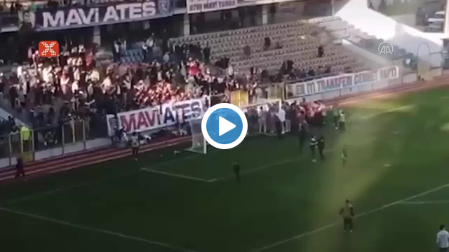 Karabük'te tribün güvenlik filesinin kopmasıyla sahaya düşen 6 taraftar yaralandı.