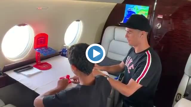 Portekizli yıldız Cristiano Ronaldo, oğluyla oynadığı oyunda hırslı görüntüsüyle dikkat çekti.