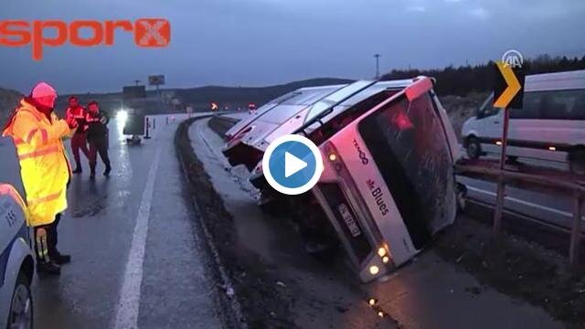 Antalyaspor - Beşiktaş maçı sonrası Kütahya'da, Beşiktaş taraftarını taşıyan otobüsün refüje devrilmesi sonucu 8 kişi yaralandı.