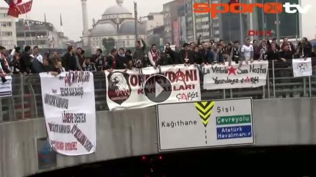 "Çarşı" grubu üyesi 35 kişi hakim karşısına çıktı. Tutuksuz yargılanan sanıklar ve izleyici olarak gelen taraftarlar Çağlayan'daki İstanbul Adalet Sarayı'nı tribüne çevirdi.