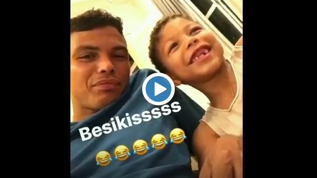 Paris Saint Germain'in dünyaca ünlü Brezilyalı savunma oyuncusu Thiago Silva, oğluna "Beşiktaş" demeyi öğretiyor. İşte o anlar...
