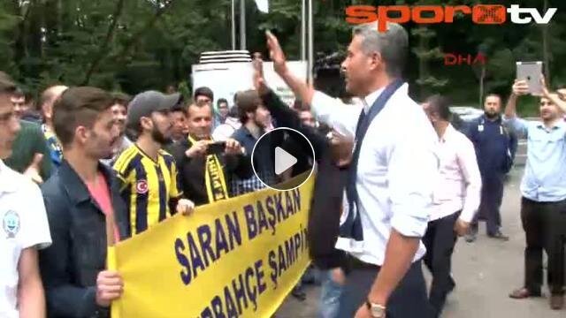 Türkiye'nin 4 bir yanından gelen Fenerbahçeliler Sadettin Saran'a destek için Saran Holding'in binasında toplandılar.