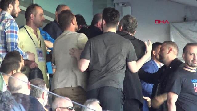 Fenerbahçe Genel Kurulu'nda büyük gerginlik Üyelerden Zeki İzci, ''Sayın Başkan artık emekliliğiniz geldi'' deyince Fenerbahçeli yöneticiler üzerine yürüdü. İlhan Ekşioğlu'nun, İzci'nin yanına gelerek sert sözler sarfettiği ve parmağıyla da tehdit ettiği görüldü.