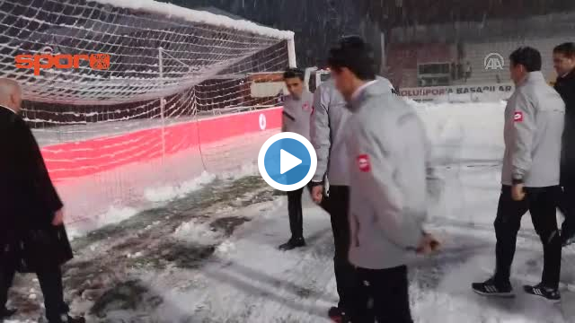 Ziraat Türkiye Kupası'ndaki Boluspor - Galatasaray maçı öncesinde zemin beyaza boyandı.