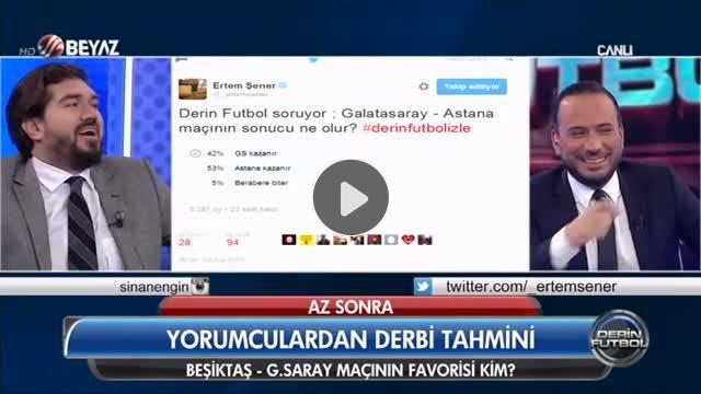 Derin Futbol programı yorumcusu Ahmet Çakar Astana'nın Galatasaray'ı farklı yeneceğini iddia etti. Bu iddia sonucunda stüdyoda kahkahalar havada uçuştu.