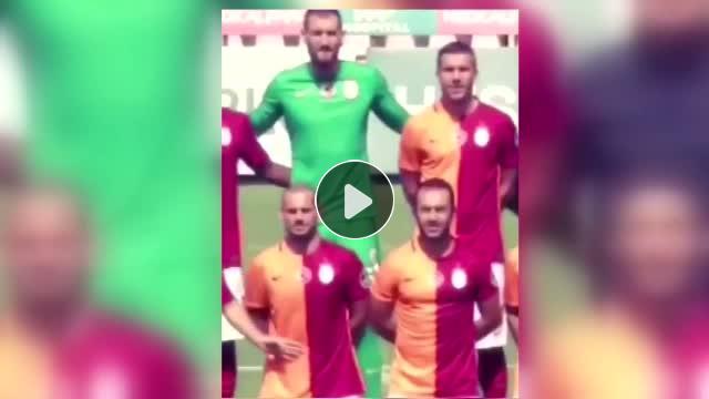 Galatasaraylı oyuncular idman sonrası 3 kupayla basın mensuplarına poz verdiği sırada Emre Çolak yanındaki Senijder'ın göbeğine dokunarak şaka yaptı. Hakkında kilo fazlası var diye haberler çıkan Sneijder ise Emre'ye tatlı sert bir karşılık verdi.