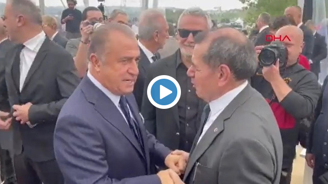 Fatih Terim, Kemerburgaz Metin Oktay Tesisleri'nin temel atma töreninde Dursun Özbek ile sohbet etti.