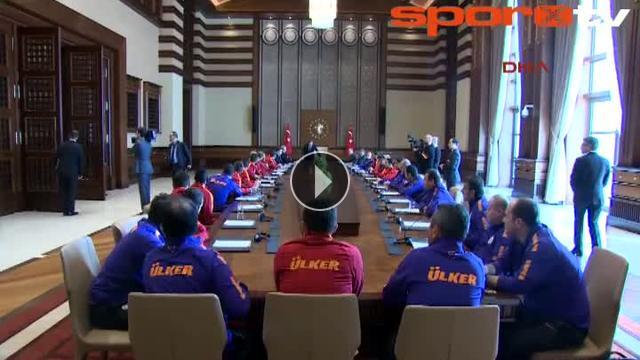 Galatasaray Futbol Takımı ve yöneticileri Cumhurbaşkanı Recep Tayyip Erdoğan tarafından kabul edildi. Cumhurbaşkanlığı Sarayı'nda gerçekleşen kabulde, Galatasaray yöneticileri tarafından Cumhurbaşkanı Erdoğan'a üzerinde 53 numaralı Recep Tayyip Erdoğan yazılı forma hediye edildi. Görüşmede Başbakan Ahmet Davutoğlu da bulundu.