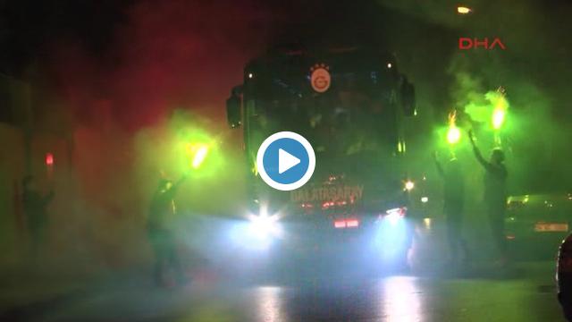 Galatasaraylı taraftarlar, Fenerbahçe ile golsüz berabere kaldıkları maçın ardından Florya'da takım otobüsünü karşıladı.