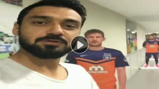 Medipol Başakşehir'in savunma oyuncuları Bekir İrtegün ve Ferhat Öztorun tesislerde kendi fotoğrafları ile şakalaştılar.