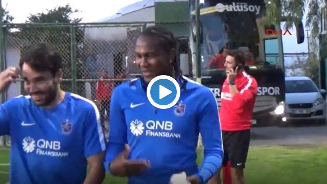 Antalya'nın Serik İlçesi'nde kamp yapan Trabzonspor'un gündüz antrenmanında tartışan Volkan Şen ile Hugo Rodallega akşam antrenmanına kol kola geldi, ikili dostluk pozu verdi.
