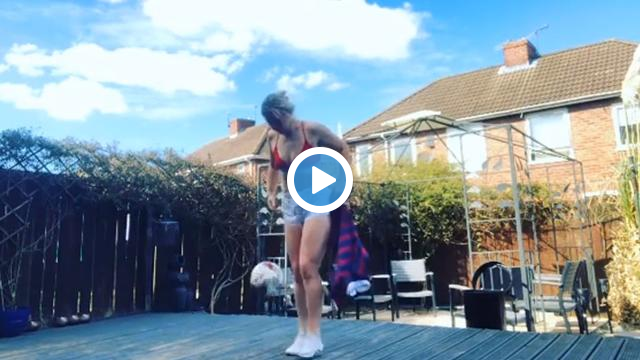 İngiltere'de Sunderland Kadın Futbol Takımı'nda oynayan Charlotte Potts, top sektirirken formasını giymeye çalıştı ancak pek başarılı olamadı.