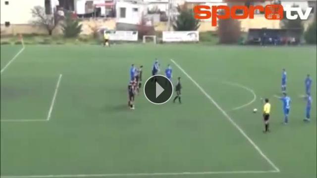 Yunanistan'da alt liglerde oynanan bir maçta kullanılan frikik ile gelen gol sonrasından sinirlenen futbolcular rakip takım oyuncularına saldırdı.