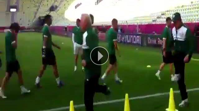EURO 2012'de İspanya ile karşılaşacakları maç öncesi İtalyan teknik adam Giovanni Trapattoni futbolcuları ile beraber ısınma antrenmanı yapıyor.