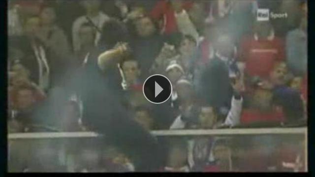 Sırbistan'dan gelen bin 600 taraftar, maçın yapılacağı Ferraris Stadyumu'nun bir bölümünü işgal ederek, terör estirdi. Maçın başlamasına 10 dakika kala bulundukları bölüme giriş-çıkışı tamamen engelleyen Sırp taraftarlar, İtalyan taraftarların olduğu bölüme duman bombaları ve şişe atmaya başladı. Bunun üzerine polis müdahale etti ve Sırpların bulunduğu bölümün etrafı tamamen güvenlik kordonuna alındı. Bu arada futbolcular sahaya çıkarak taraftarlarını yatıştırmaya çalıştı ve hakemler maçın başlaması kararını aldı.