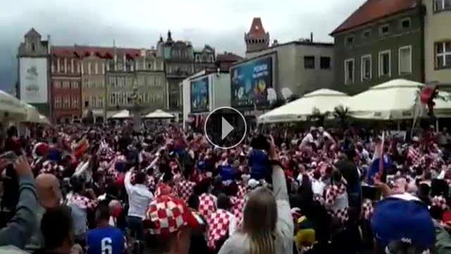 EURO 2012 Avrupa şampiyonası İtalya ile Hırvatistan grup maçı öncesi Hırvat taraftarlar Poznan meydanında takımlarına destek verdiler.