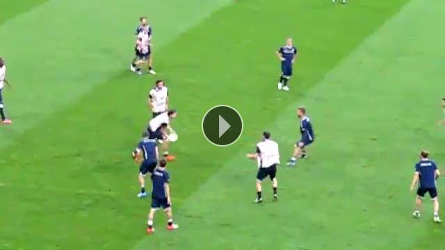 EURO 2012'de İrlanda galibiyeti ile çeyrek finale adını yazdıran İtalya'da antrenmanlar da oldukça keyifli geçiyor. Futboldaki hünerlerini bir tarafa bırakan İtalyanlar ragbi antrenmanı yaptılar.