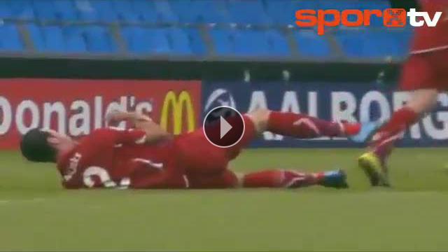 Çek Cumhuriyeti - Beyaz Rusya 21 yaş altı maçında Çek oyuncu Jan Leckjak'in talihsiz bir şekilde sakatlanma anı.