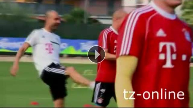 Bayern Münih'in İspanyol teknik direktörü Pep Guardiola antrenmanda Hollandalı yıldız Arjen Robben'e böyle takıldı.