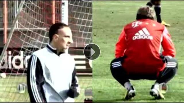 Bayern Münich antrenmanında Bastian Schweinsteiger topa vurmak yerine Franck Ribery'e vurunca Fransız oyuncunun sakatlanmasına neden oldu.