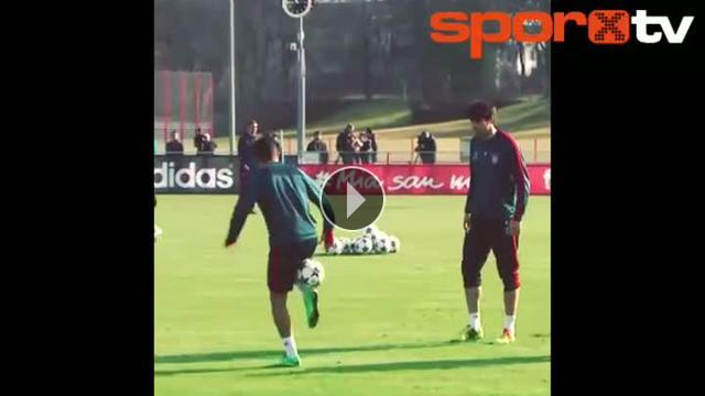 Bayern Münih'in İspanyol yıldızı Thiago Alcantara, Şampiyonlar Ligi'nde oynanacak olan Arsenal maçından önceki antrenmanda küçük bir şov yaptı.