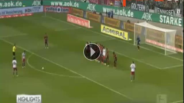 Almanya Bundesliga'nın 30.haftasında Hamburg deplasmanda Hannover 96'ya 2-1 mağlup olurken milli futbolcumuz Hakan Çalhanoğlu muhteşem bir frikik golüne imza attı.