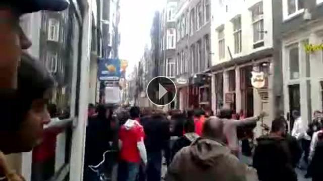 Chelsea ile Benfica arasında oynanan UEFA Avrupa Ligi finalinden önce Amsterdam sokaklarında iki takım taraftarları arasında olaylar çıkarken polis olaylara müdahale etti.