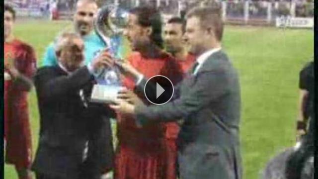 Bank Asya Birinci Ligi'nin şampiyonu Kardemir Karabükspor, Boluspor ile yapacağı karşılaşma öncesi kupasını TFF Başkanı Mahmut Özgener'den aldı.