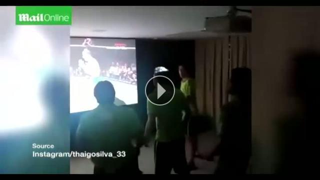Brezilyalı futbolcular David Luiz ve Julio Cesar, dev ekranda izledikleri boks maçında heyecanlı bir şekilde ekrana yumruk attı...
