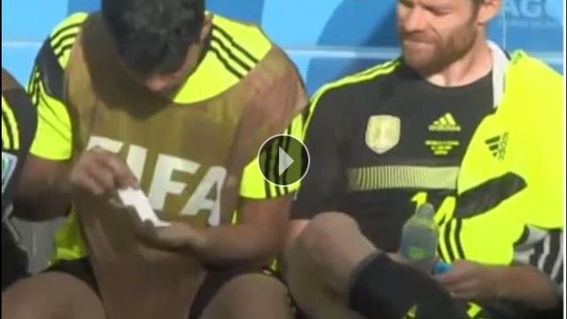 İspanya Milli Takımı'nın yıldızı Diego Costa, yedek kulübesinde Xabi Alonso'ya ağda yapmaya çalışınca alay konusu oldu...