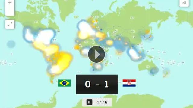 Dünya Kupası'nda Brezilya ile Hırvatistan arasında oynanan açılış maçında atılan tweetlerin yoğunluğu haritadan gösterildi...