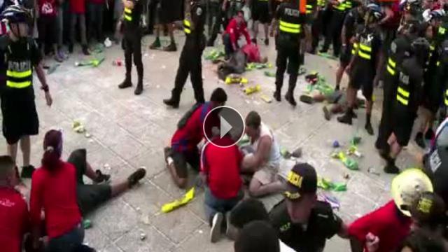 Kosta Rika'nın tarihi karşılaşmasını izlemek için San Jose meydanında toplanan taraftarlar arasında çıkan arbedede üç kişi bıçaklandı.