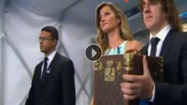 2014 Dünya Kupası Finali'nin ardından son şampiyon İspanya'nın kaptanı Carles Puyol ve Brezilyalı model Gisele Bündchen, kupayı birlikte sahaya getirdi.