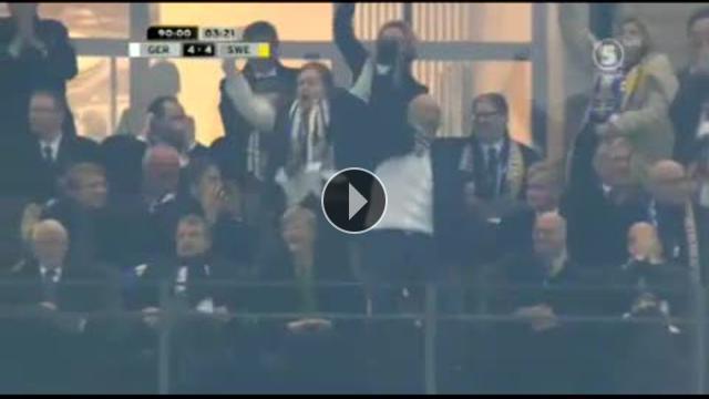 İsveç'in Almanya karşısında 4-0'dan maçı 4-4'e getirmesi dünya çapında büyük yankı uyandırırken, son dakikada gelen gol sonrası tribünde maçı takip eden İsveç başbakını Fredrik Reinfeldt'i de çılgına çevirdi.