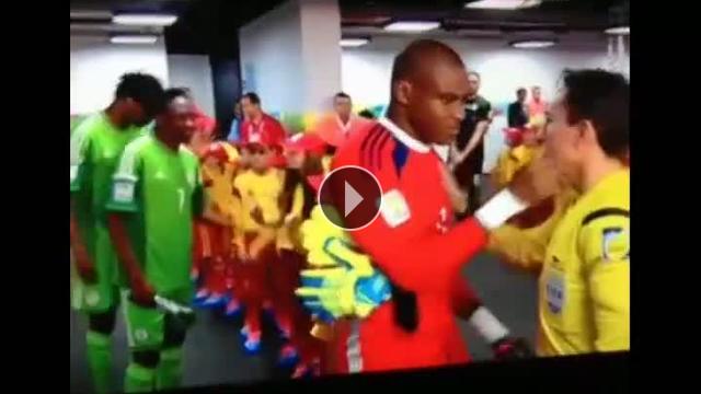 Nijeryalı kaleci Vincent Enyeama, Dünya Kupası'nda maça çıkarken hakemden makas aldı...