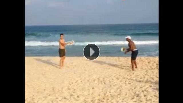 Hollanda'nın yıldız ismi Robin Van Persie, kupaya verilen 2 günlük arada Patrick Kluivert ile sahilde tenis oynadı.