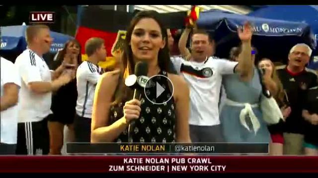 Dünya Kupası'nda Cezayir ile Almanya arasında oynanan karşılaşmayı takip eden ünlü muhabir Katie Nolan'ı taraftar bir anda sarılıp öptü...