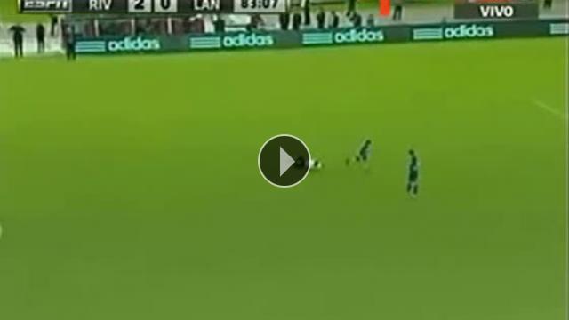 Arjantin Premier Lig Torneo Final'de oynanan River Plate-Lanus maçında sahaya giren 10 yaşındaki minik taraftar güvenlik görevlilerine zor anlar yaşattı.