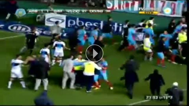 Arjantin Açılış Ligi'nde Arsenal Sarandi sahasında Gimnasia La Plata ile 1-1 berabere kalırken maç sonunda çıkan kavgada tam 5 kırmızı kart çıktı.