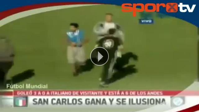 Arjantin'de oynanan bir alt lig maçında önce tribünlerde olay çıkaran taraftarlar ardından sahaya girince hakem maçı tatil etmek zorunda kaldı.
