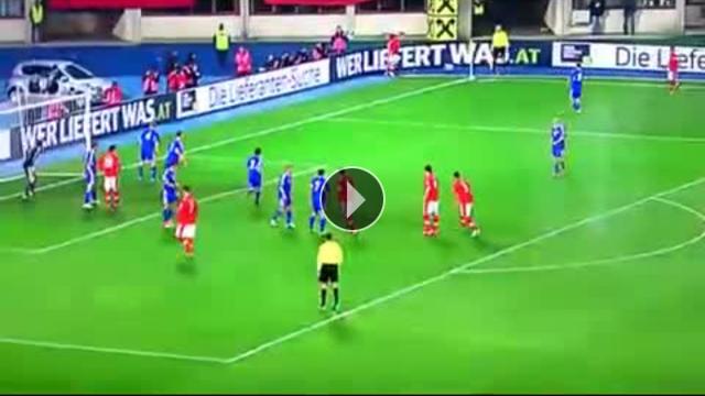 Avusturya'nın Faroe Adaları'yla oynadığı Dünya Kupası Eleme maçında Marko Arnautovic harika bir rabona ortasıyla topu ceza sahasındaki arkadaşıyla buluşturdu.