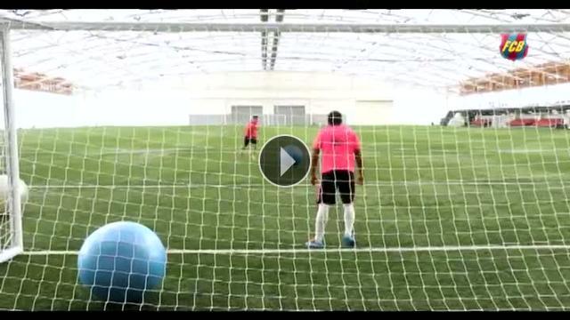 Yeni sezon hazırlıklarının İngiltere'de sürdüren Barcelona'da Jordi Alba ve Rafinha egzersiz topu ile penaltı çekişti.