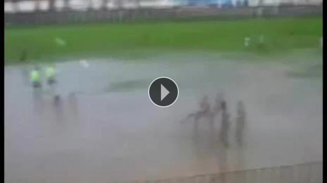 Brezilya Championship Serie B Ligi'nde oynanan bir maçta sahanın yarısı resmen suyla dolu olmasına rağmen karşılaşma devam etti. Şiddetli yağmur nedeni ile taşan kanalizasyon suları içinde oynanan maçta Itaperuna Aperibeense’yi 1-0 yendi.