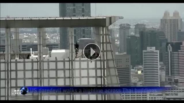 Tayland'ın başkenti Bangkok, dün ABD'li ip cambazı Andy Lewis'in nefes kesen gösterisine sahne oldu. 169 metre yükseklikteki iki bina arasında ip üzerinde yürüyen sporcu, yeni bir rekorun da sahibi oldu...