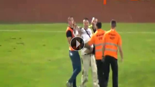 UEFA Avrupa Ligi'nde oynanan Partizan-Tottenham maçında maçın bitiş düdüğüyle birlikte sahaya giren ve Danko Lazovic'in yanına gelmesini isteyen fanatik bir Partizan taraftarı, beklemediği bir sürprizle karşılaştı.