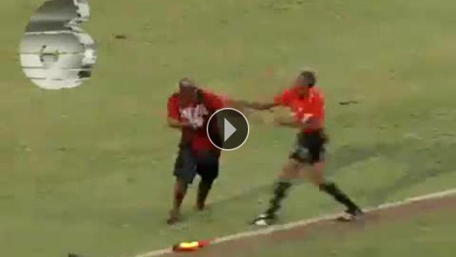 San Fernando ile Shiva Boys'un karşı karşıya geldiği maçta tribünden inen bir taraftar yan hakeme saldırdı.