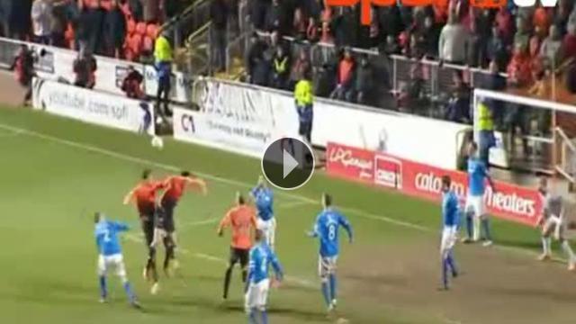 İskoçya Premier Ligi'nde oynanan Dundee United-St. Johnstone maçında Dundee forması giyen Brian Graham ve Gavin Gunning bir pozisyonda anlaşamayınca birbirlerine girdiler.