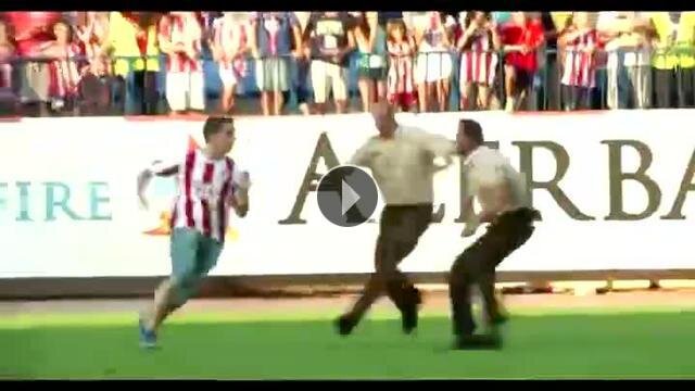 Atletico Madrid'in yeni transferi Mario Mandzukic'in imza töreninde sahaya atlayan bir taraftar güvenlik görevlilerine zor anlar yaşattı...