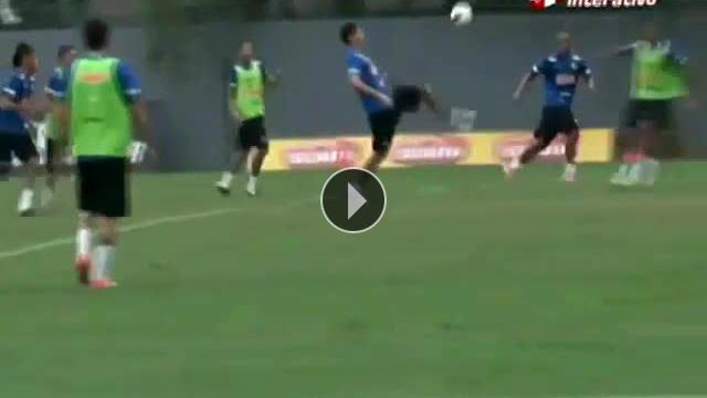Santos'un Brezilyalı dünyaca ünlü genç yıldızı Neymar oynadığı futbol ile tüm büyük kluplerin dikkatini çekiyor. Neymar sahadaki hırsını idmanda da koruyor işte idamanda attığı gol!